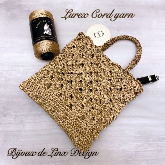 美しいゴールドラメ入りで華やかなコードヤーンです。