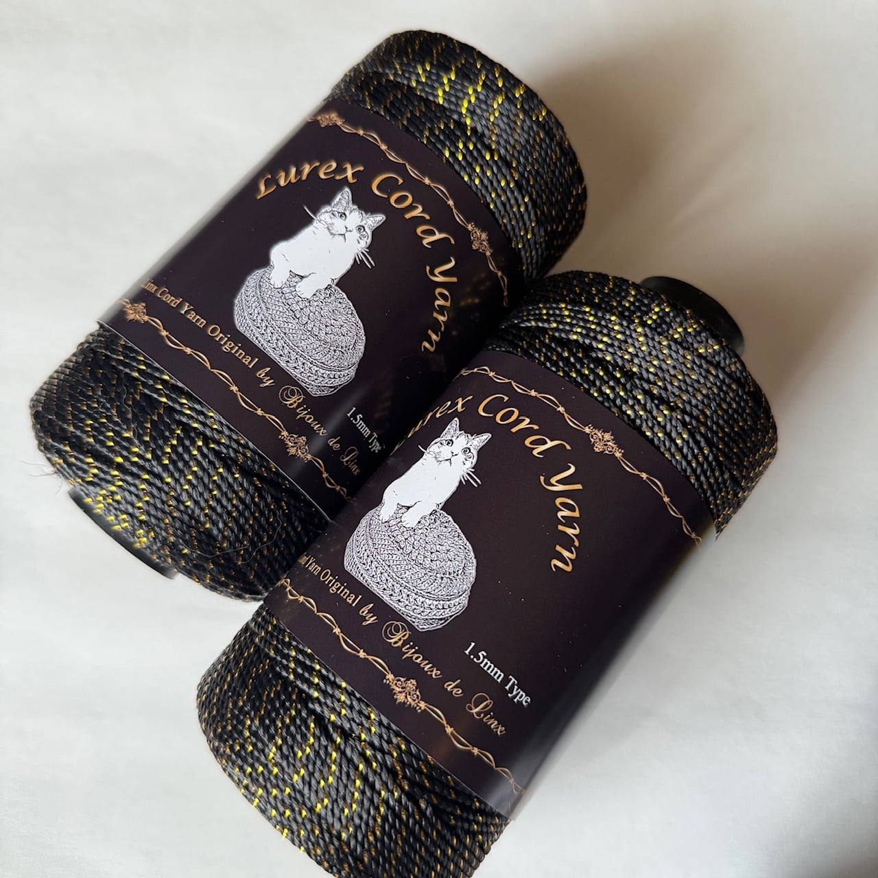 美しいゴールドラメ入りで華やかなコードヤーンです。